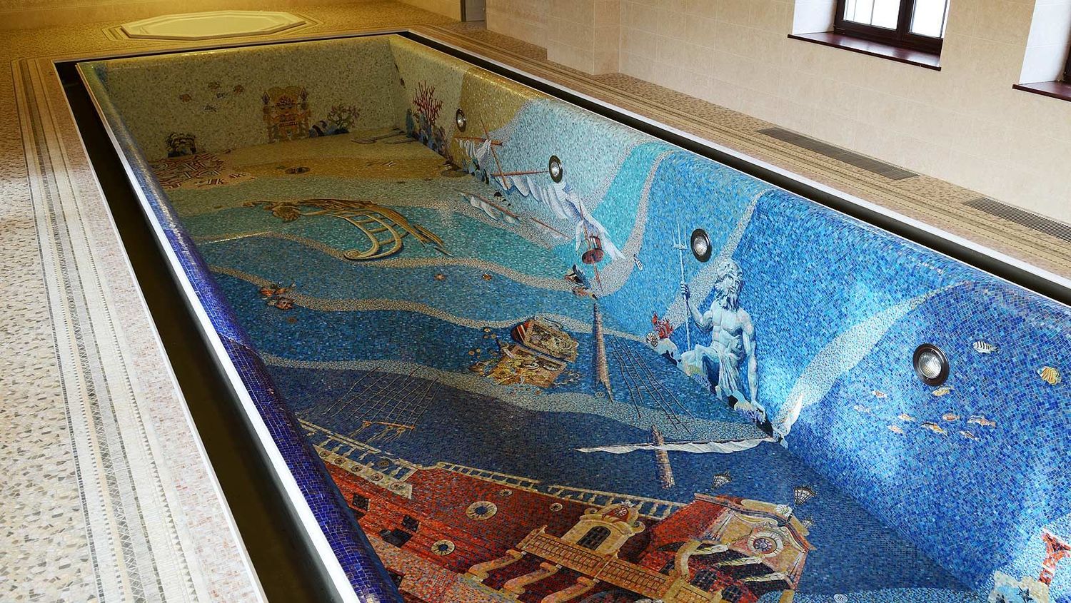Стекломозаика для бассейна в Симферополе является довольно распространенным материалом, позволяющим создавать любые дизайнерские задумки, начиная банальными цветовыми эффектами, заканчивая серьезными арт-проектами. Подобная облицовка бассейнов в Симферополе имеет привлекательный, запоминающийся внешний вид.